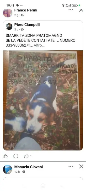 Smarrita canina zona Pratomagno